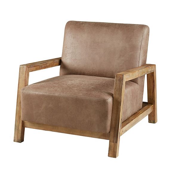 tan leather and wooden easton accent chair